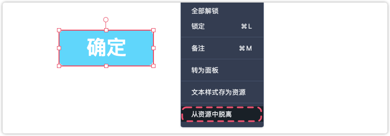 如果从资源中选用组件时,不希望它与其它相关组件的属性被同步修改,则可以在组件的右键菜单中点击”从资源中脱离“。点击后,其属性编辑会独立出来,不再与其它组件的属性编辑相关联。