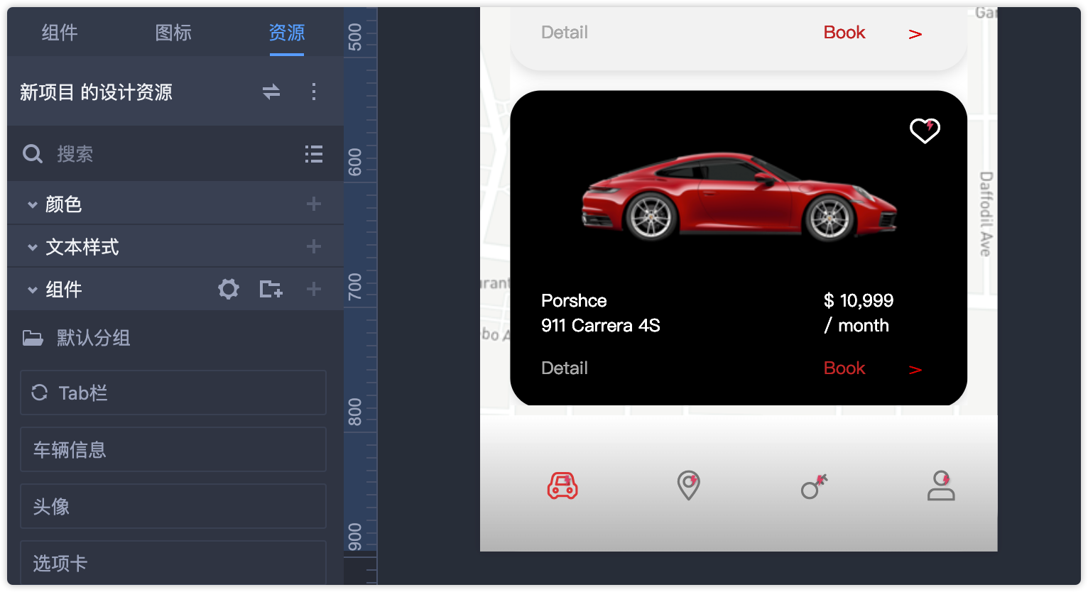 你可以将任意组件、图标、形状添加到你的设计资源中。
