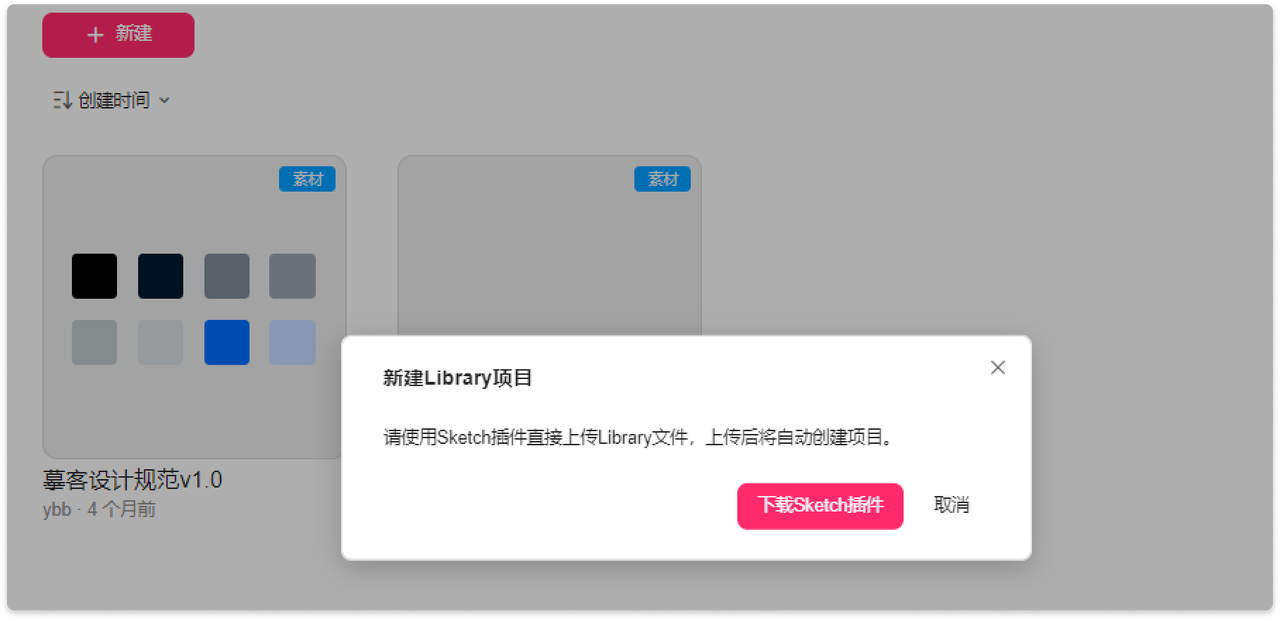Library项目需要下载Sketch插件使用,通过Sketch插件上传Library文件,上传后会自动创建对应的设计规范项目。