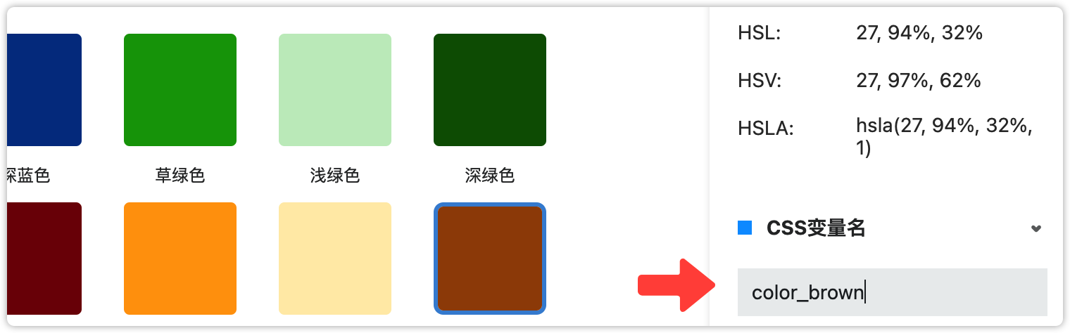 选中任意一个颜色或文字规范,在右侧属性面板上,可以直接编辑规范的变量名。生成代码时,会自动应用变量名到样式代码中。