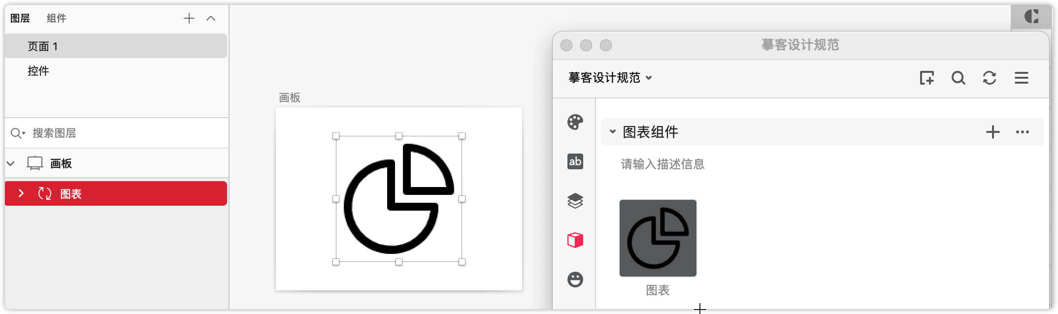 在摹客设计规范中,右侧面板为规范属性面板。面板上展示了规范名称、图示、描述信息、基本属性、CSS变量名等属性。