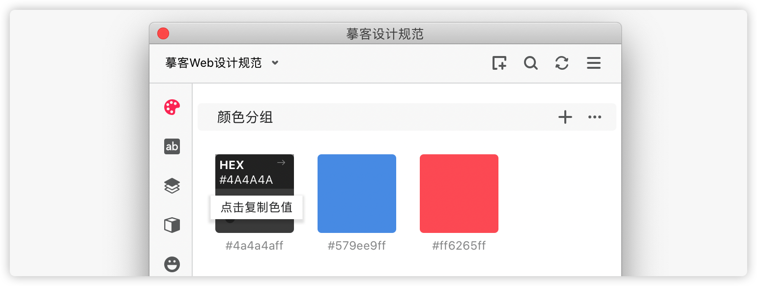 点击颜色模式下方的色值名称,即可一键复制色值。