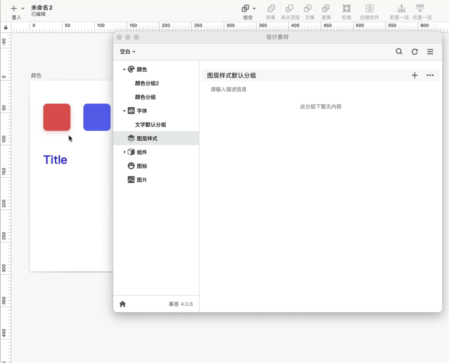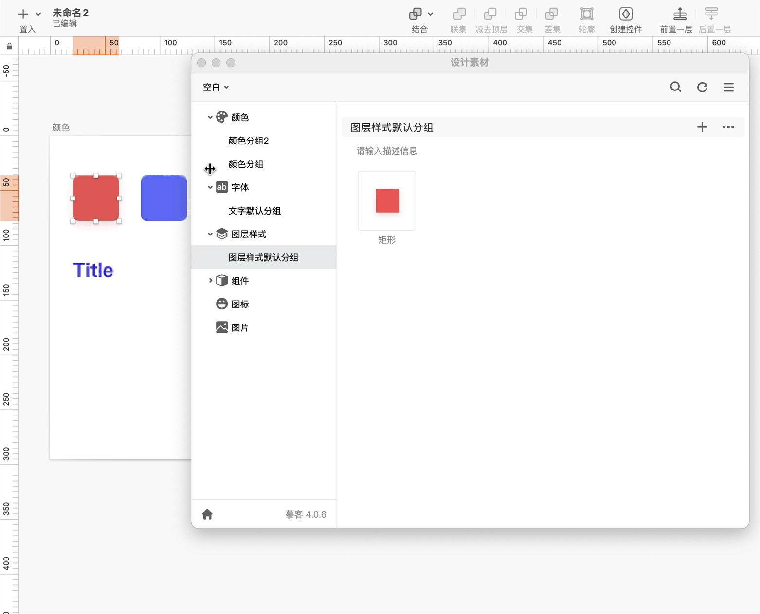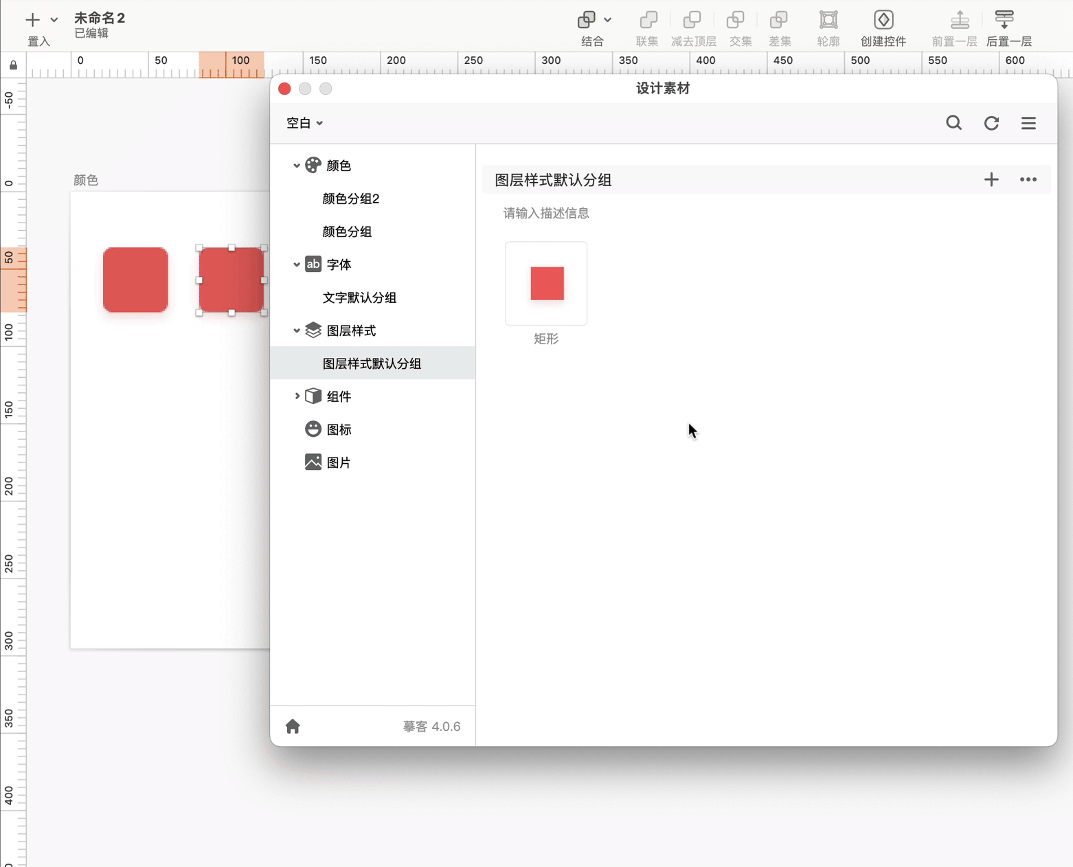 在图层样式分类下新建一个分组。在设计稿上选中一个带有图层样式的图层(如带有阴影、模糊等),点击分组名称右侧的”+“,即可添加图层样式到摹客设计系统。