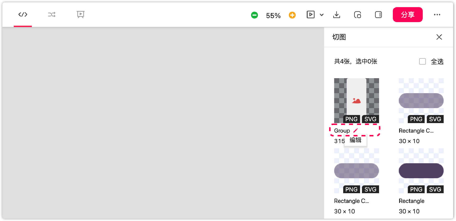 点击切图名称右侧的铅笔图标,就可以快速给切图重命名。
