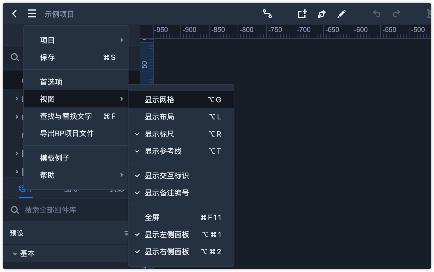 网格功能可以将画板进行网格状划分,从而帮助你更准确地调整画板中组件的位置和尺寸。
