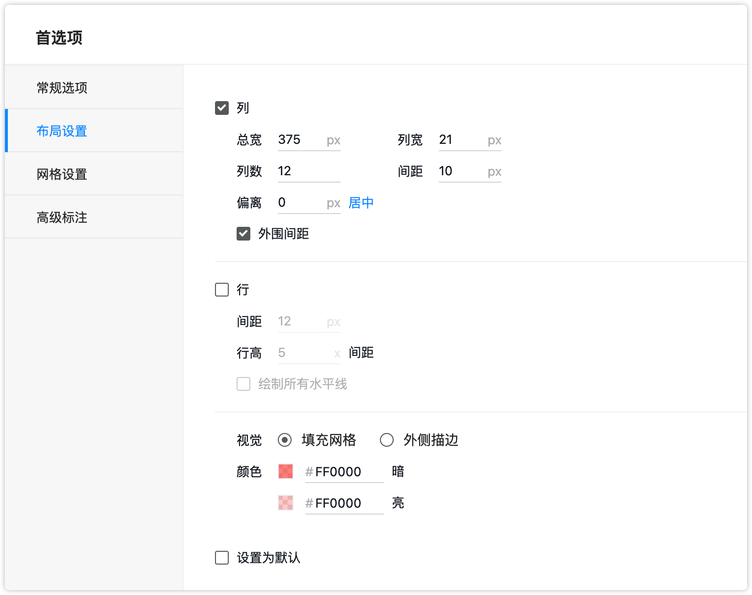 勾选”设置为默认“后,当前参数会作为后续新开启的网格的默认设置。