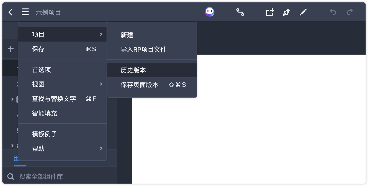 摹客RP会自动记录你的编辑操作,并自动生成历史版本。你可以随时查看历史版本记录,浏览不同版本中的页面内容,还可以将页面内容还原到相应的历史数据。