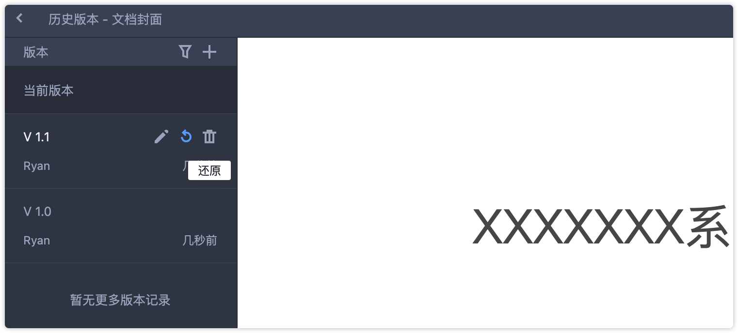 点击还原按钮,即可将当前页面内容还原到所选的历史版本。