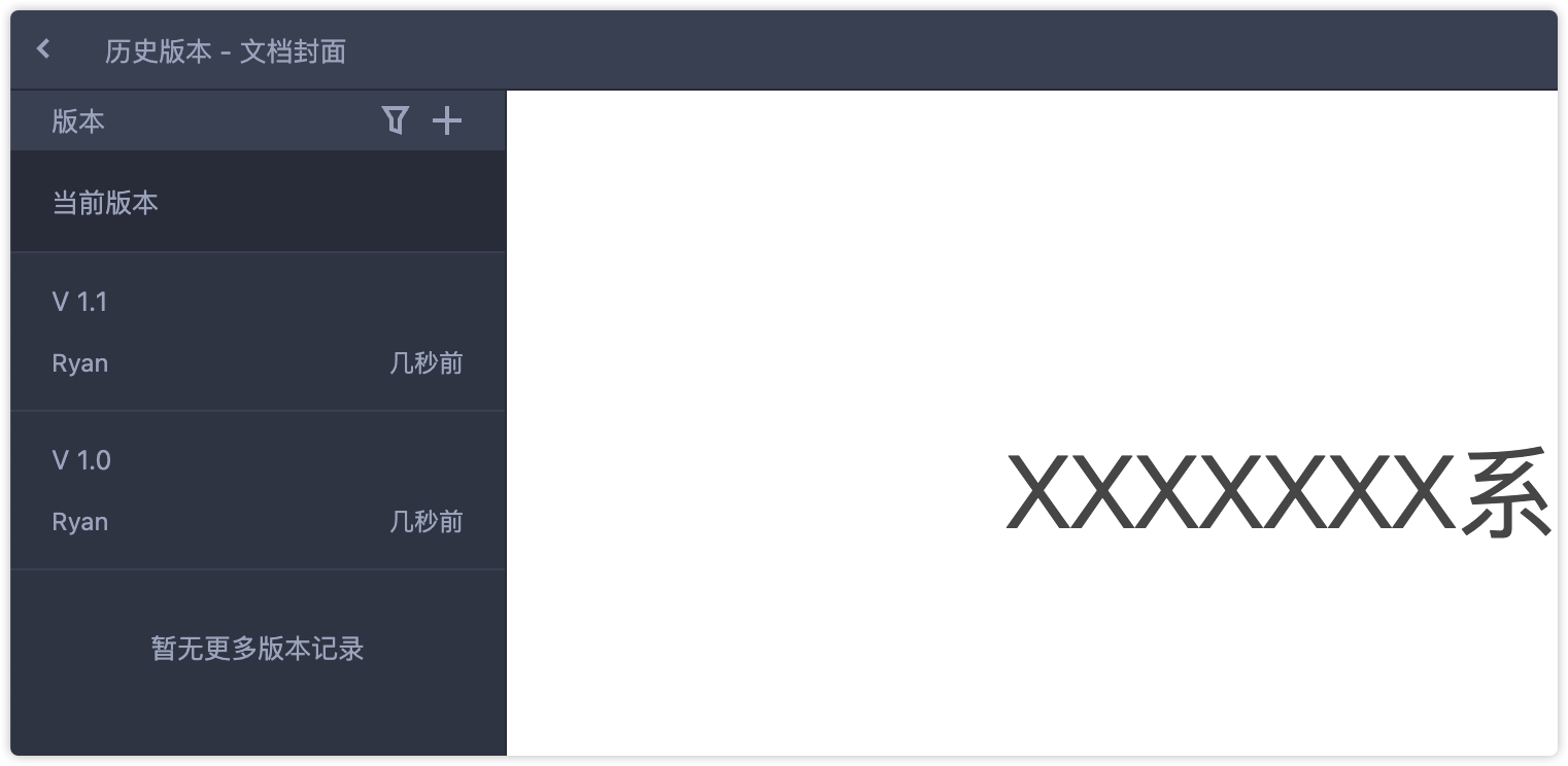 在历史版本界面左侧,展示了当前页面的所有历史版本和各个版本下,当前页面中的所有画板。