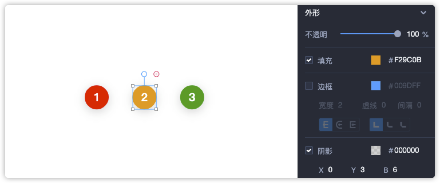 在右侧属性面板中,可以设置编号的的透明度、填充、边框、阴影等属性。