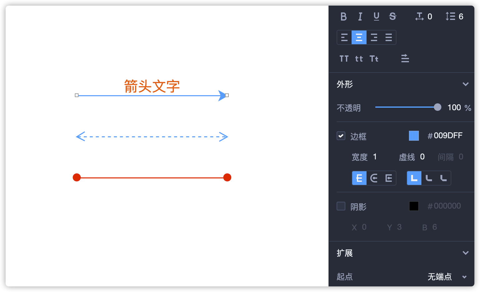 在右侧属性面板中,可以设置箭头的的透明度、边框、阴影等属性。