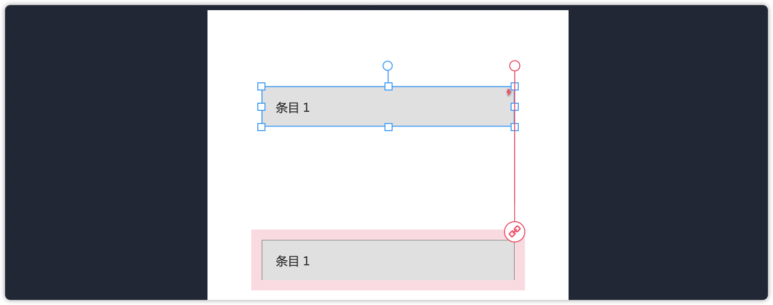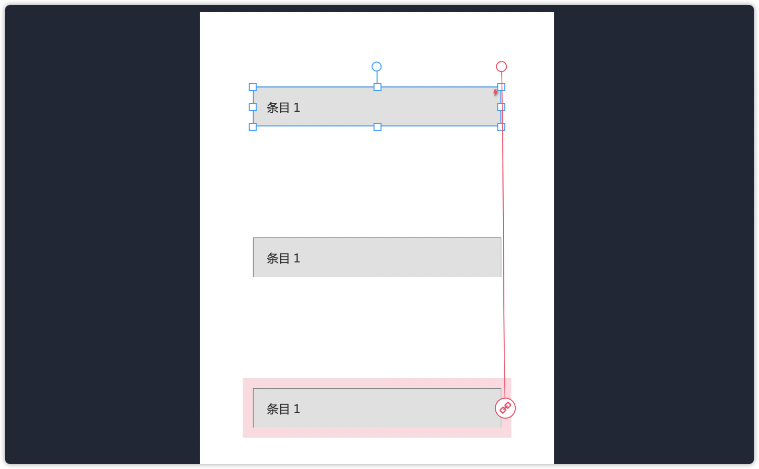 第7步:选中第一个面板,点击右上角圆点连向第三个面板,设置同上一步。这个交互是实现点击第一层列表后,第三层列表下移的效果。