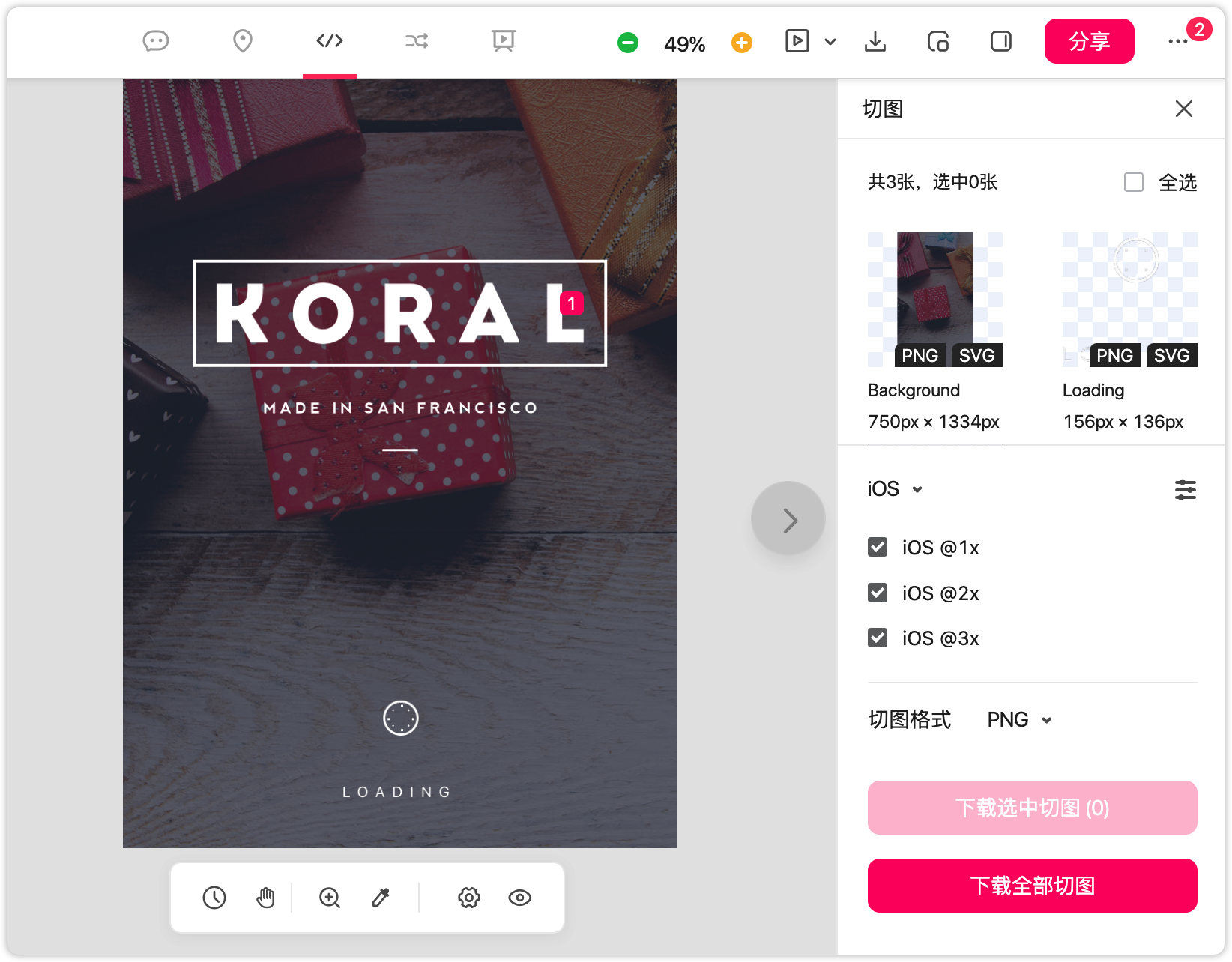 设计师标记切图上传摹客后,工程师可一键下载全部切图,并且包含了该设备所有倍率的切图哦。
