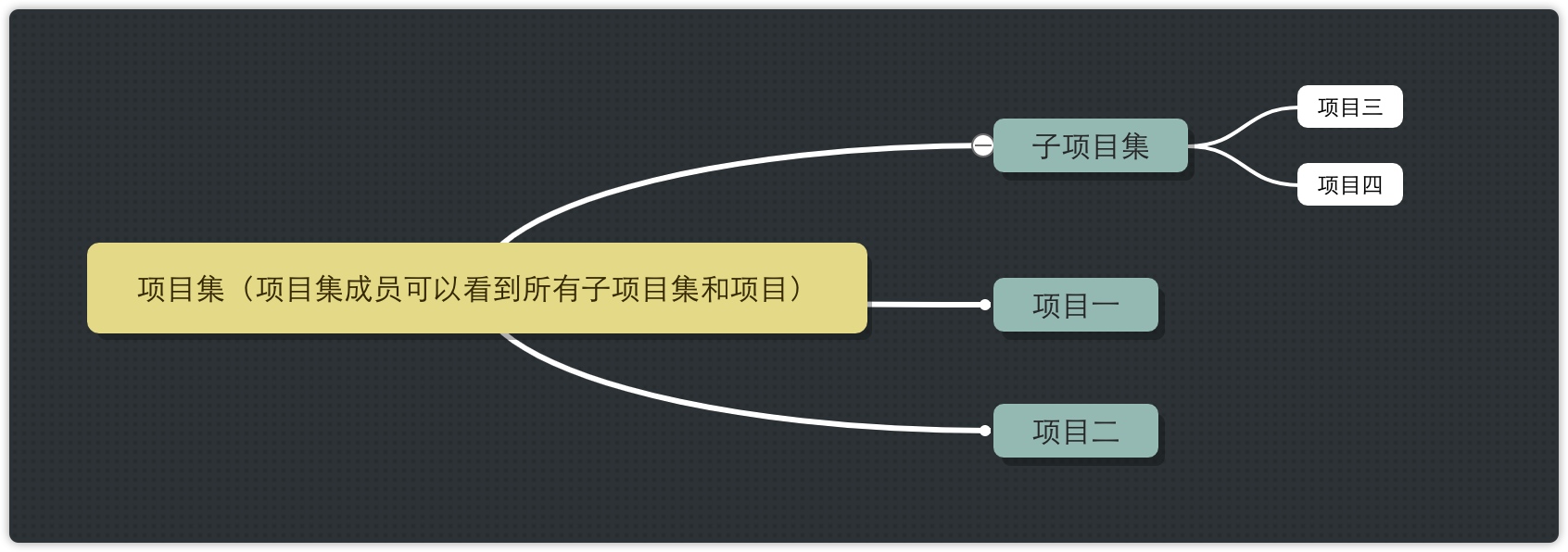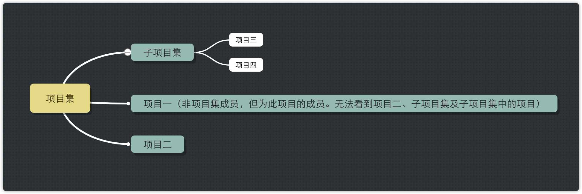 项目集内可以建子项目集,“子项目集”会继承“父项目集”内的所有成员。