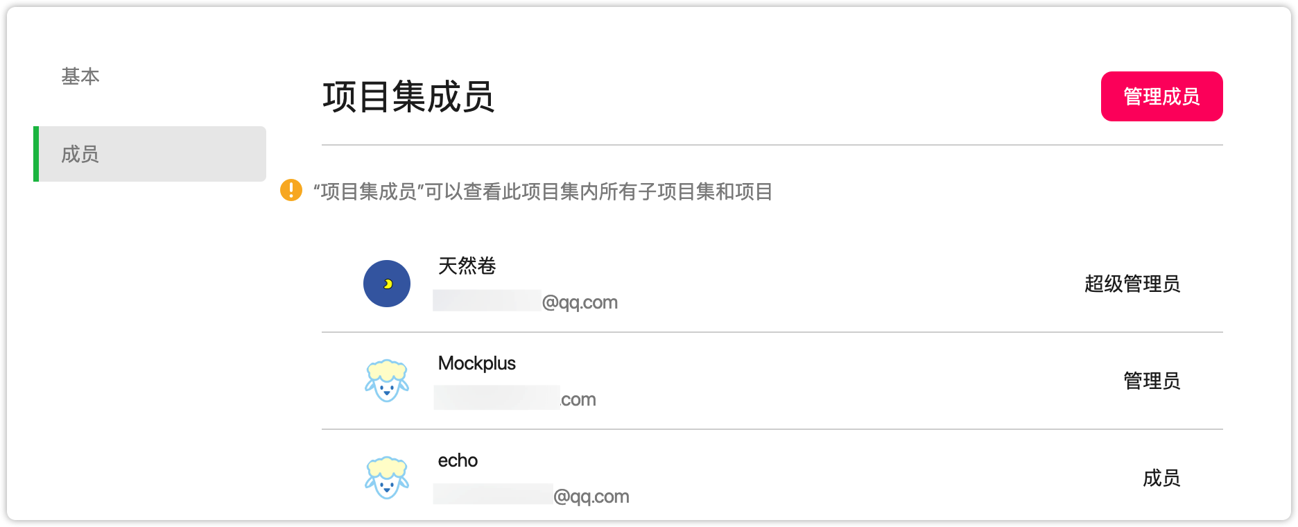 点击项目集封面右上角的三个点 - 设置,切换到成员一栏,可以设置项目集成员。当团队中某成员被设为项目集成员后,将会有权限查看到此项目集内的所有项目。(注:项目集创建者默认为项目集成员。成为项目集成员后,团队中的身份保持不变)