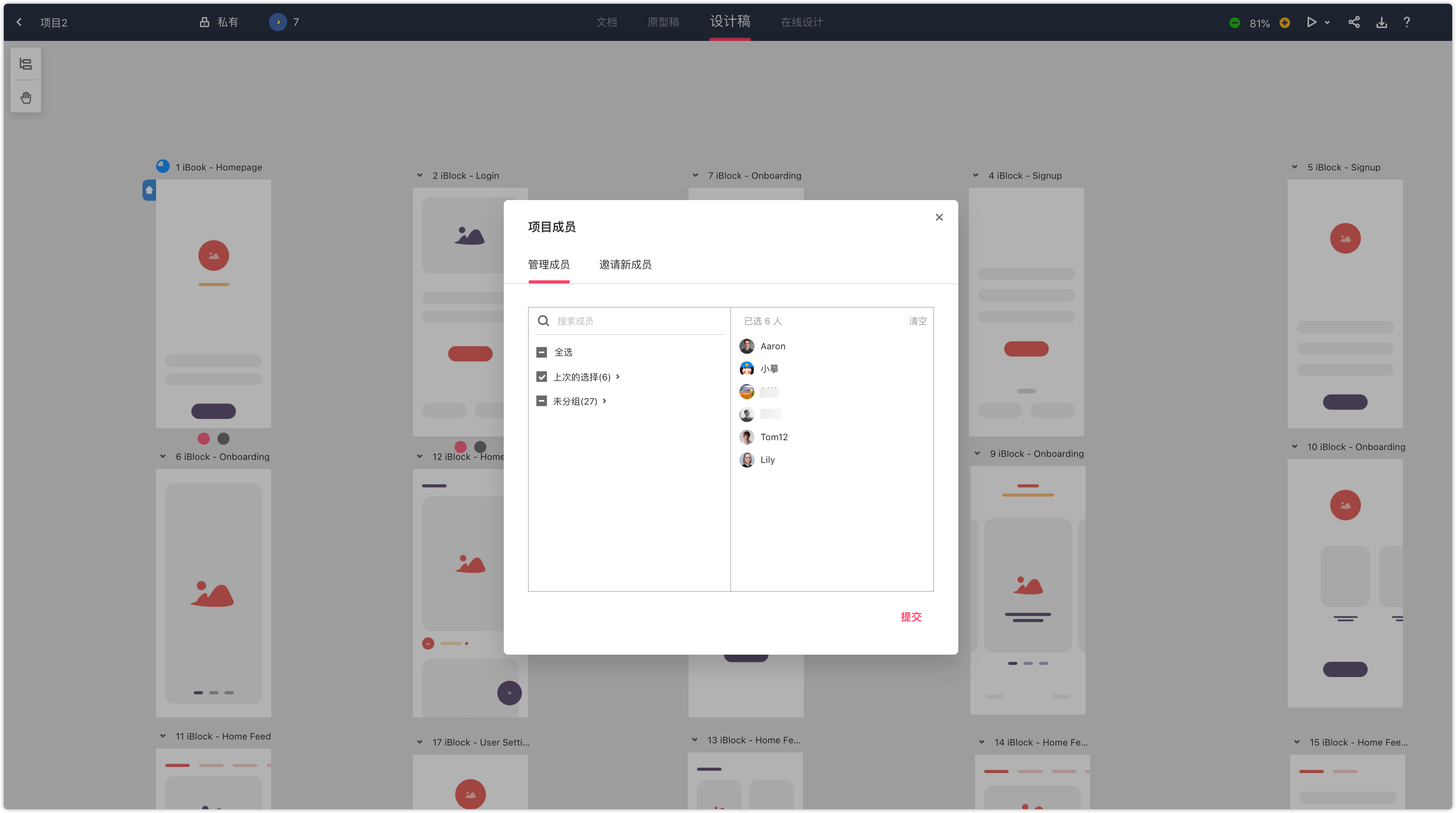 同时,在项目的私密性方面,摹客也提供了私有项目和团队项目两种类型。如果仅需要部分人可见,就将项目设置为私有,并将目标成员邀请进入项目。