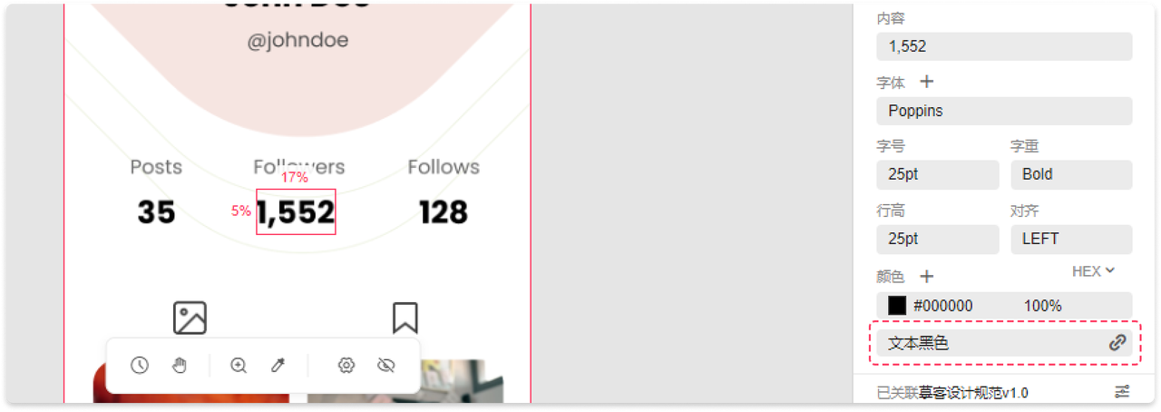 也可以在设计规范中设置关联的项目,关联后,进入开发模式就可以直接查看设计规范中设置的变量名。
