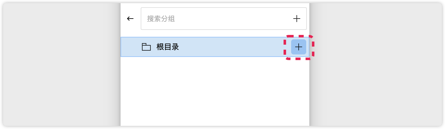 当鼠标悬浮在分组名称上时,点击右侧图标“+”可在当前分组内创建子分组。