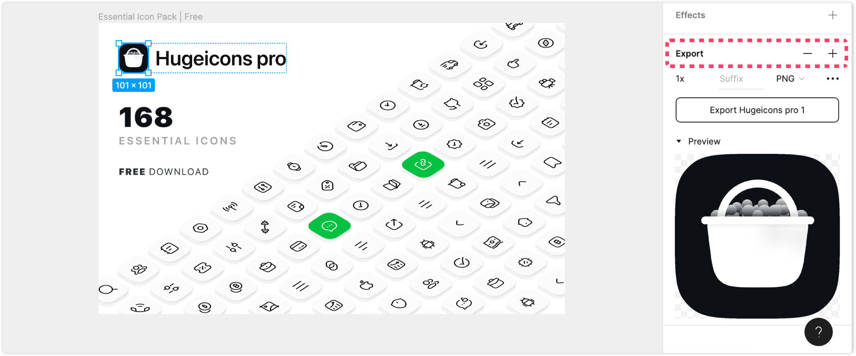方法一:使用 Figma 右下角“Export”,为图层添加导出即可。