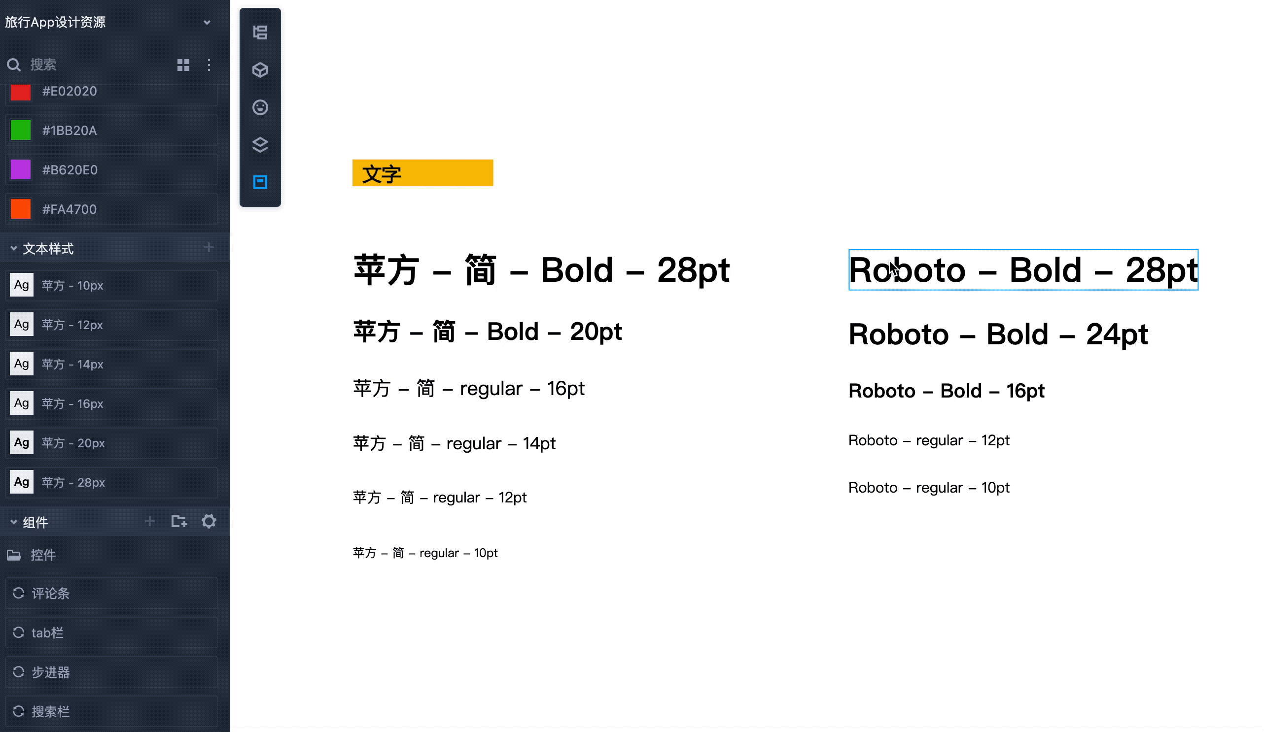 复用设计资源更是简单易用。选中组件,再单击颜色或文本资源,即可进行应用。颜色资源还支持自行选择应用到填充、边框或文字上。而对于组件资源,只需拖拽到工作区中即可使用。