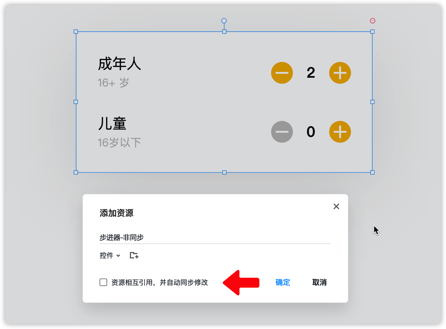 在保存组件资源时,可以自行选择是否要让组件资源带有同步修改的特性。如果勾选此选项, 那么对任意一个实例的修改都会同步作用到其它所有实例上;而如果不勾选此选项,所有实例之间则不存在同步关系,你可以对单个实例进行自由地修改和调整。前者可以帮你快速完成组件的批量修改,后者则更适用于后续需要进一步修改的组件。