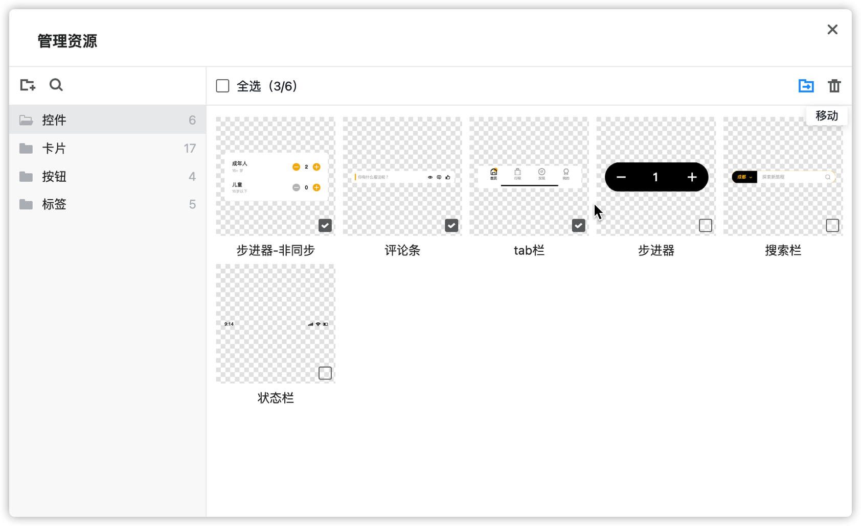 打开资源管理器,更能批量对分组中的资源进行查找、删除甚至跨分组移动。当资源库中组件资源越来越多时,资源管理功能帮你节省的时间绝对不止一点点。
