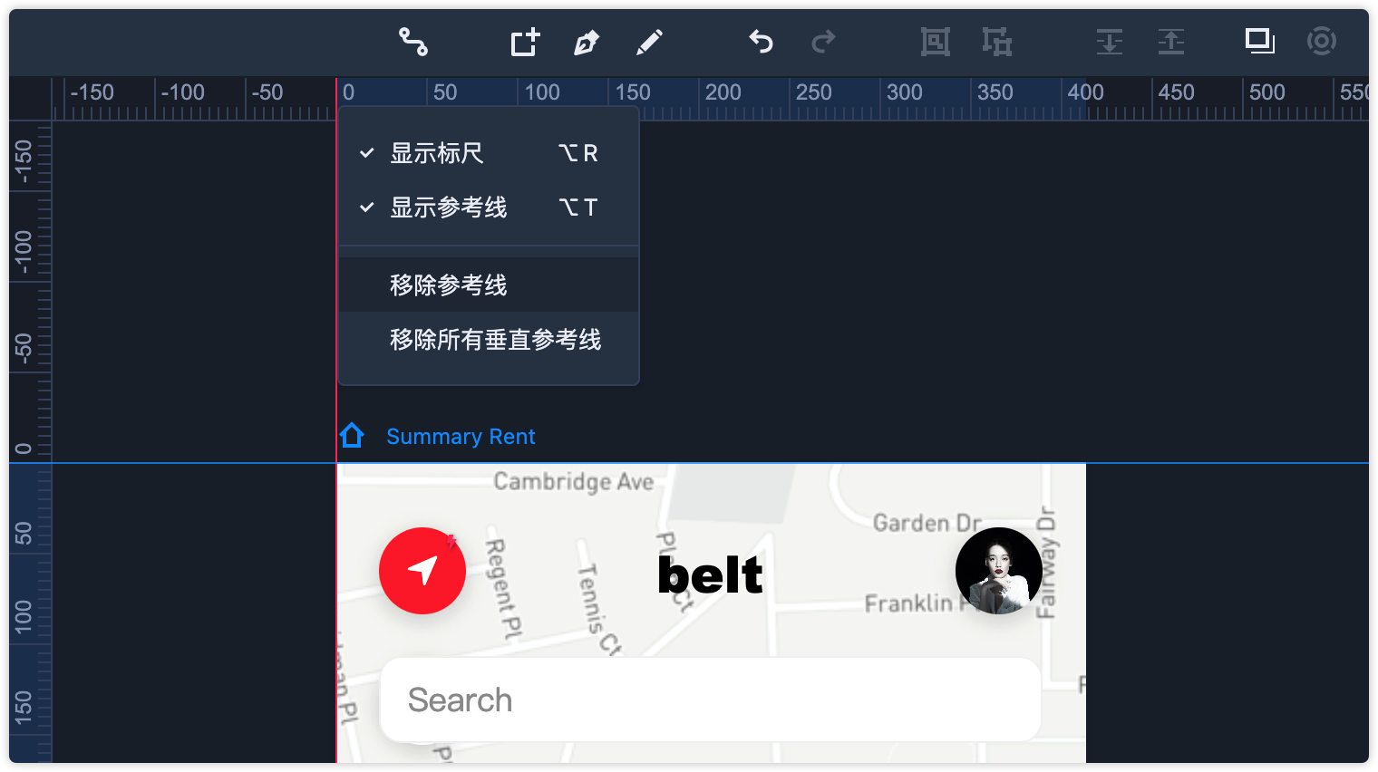 摹客默认为你显示参考线和标尺,你也可以通过两种方式显示/隐藏参考线或标尺。