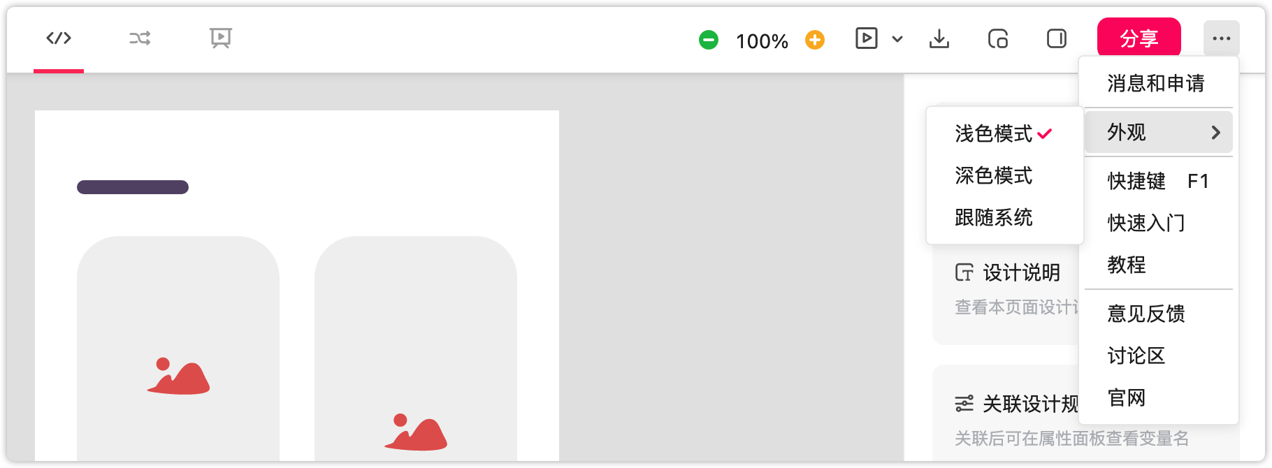 分享关联的设计稿
