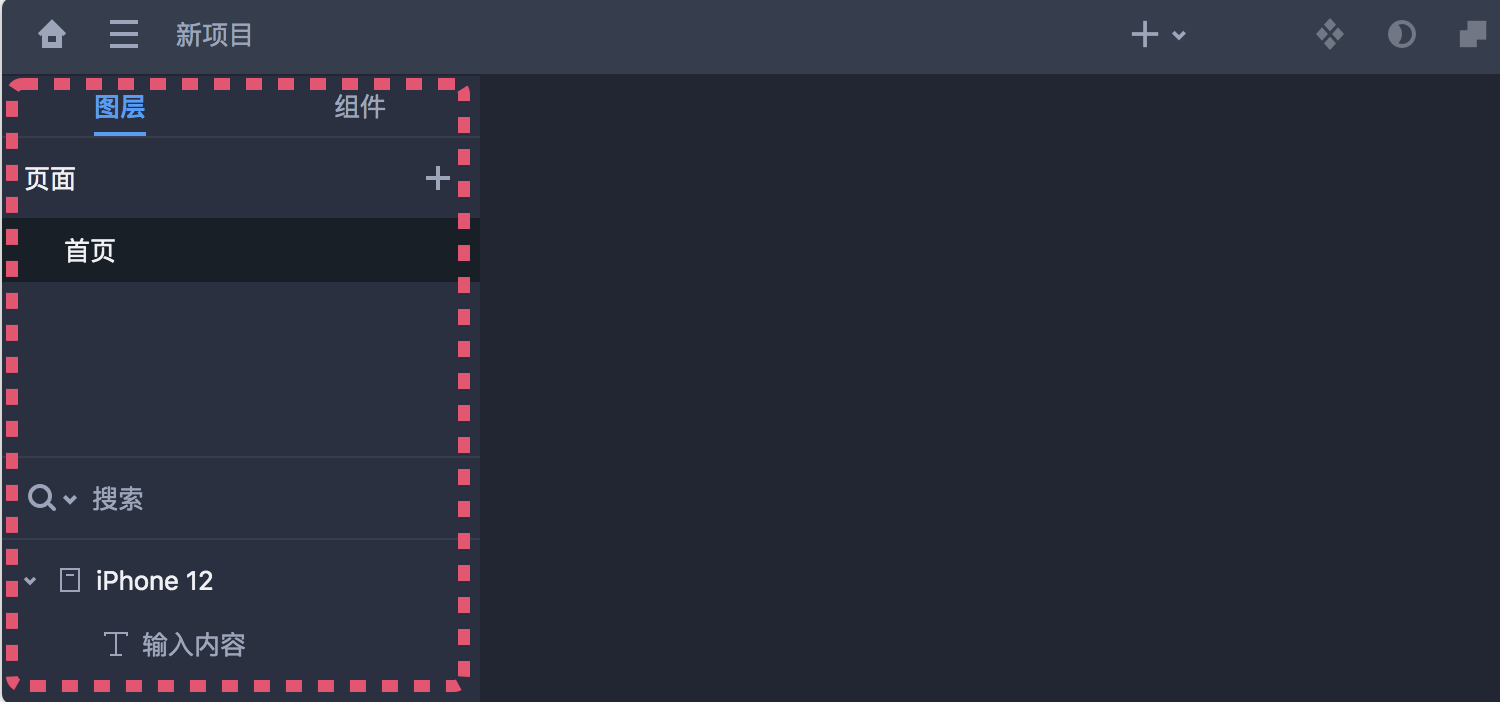 界面中间是工作区域,所有编辑操作都在工作区中进行。工作区内无限内容,无限延伸。