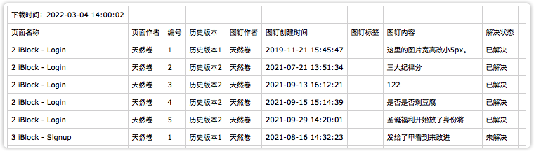 本地文件中会存储下载时间、含有评论的页面名称、页面作者、页面编号、历史版本等信息,方便批量复制或其它用途。