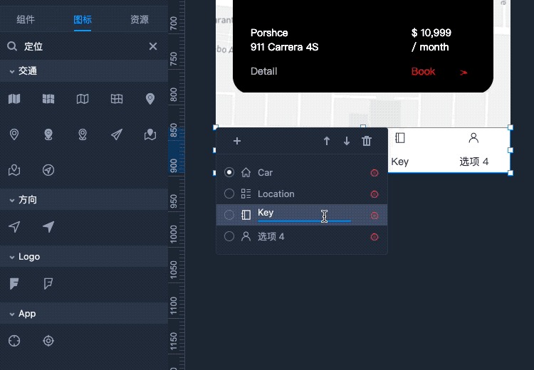 高自由度的编辑方式:摹客RP的预设组件,支持非常便捷的内容编辑及样式编辑。只需双击组件,就能在内容编辑窗口中对选项完成新增、删除、编辑、排序、设置默认选中项等操作。