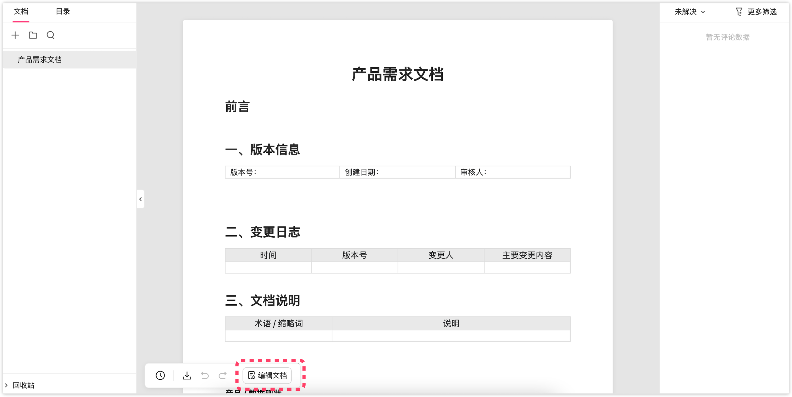 点击右下角“编辑文档”按钮,即可进入文档编辑界面。