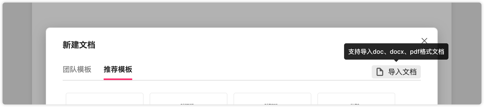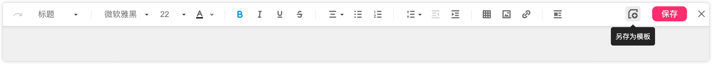 文档编辑完成后,在顶部右上角可以选择"另存为模板",可以将当前文档存为模板,团队成员在新建时,即可引用保存的模板。