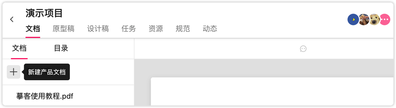 在摹客中可以上传PRD文档进行审阅,也可以直接新建产品文档,在线撰写。