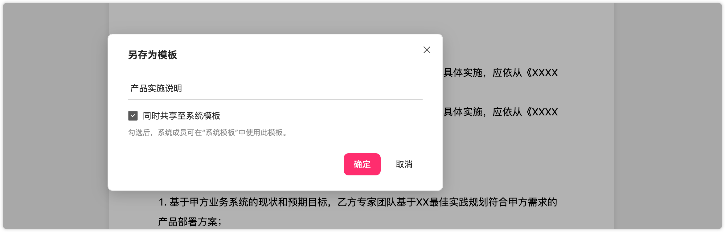 当勾选"同时共享至系统模板"后,部署系统内所有成员均可引用此模板;未勾选默认仅会保存至当前团队模板内。